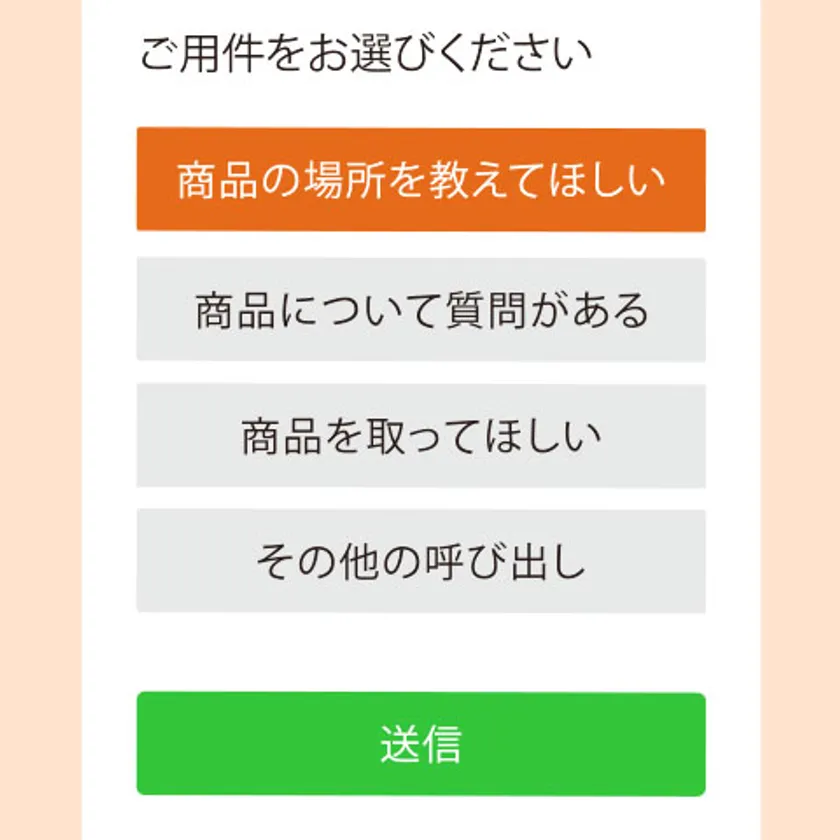 そこから一つを選択して送信。するとそのメッセージが、店舗スタッフのスマホに表示されます。