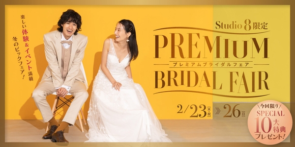 このたび、株式会社デコルテ(兵庫県芦屋市)が運営するウェディングフォトスタジオ「スタジオ8(スタジオエイト、愛知県名古屋市)」にて、2023年2月23日(木・祝)~2月26日(日)までの期間限定で『スタジオ8 プレミアムブライダルフェア』を開催いたします。