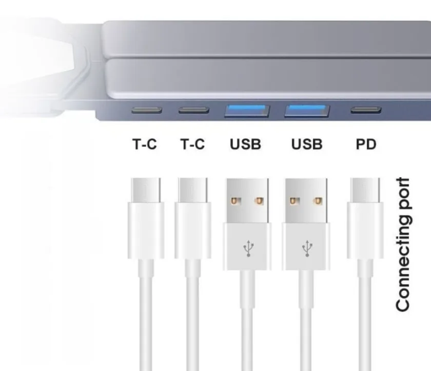 このスタンドはUSBポートを拡張し、さらにノートPCの放熱効率も向上することができます。ノートPCを使用する際のタイピングのしやすさや、姿勢改善にも貢献します。