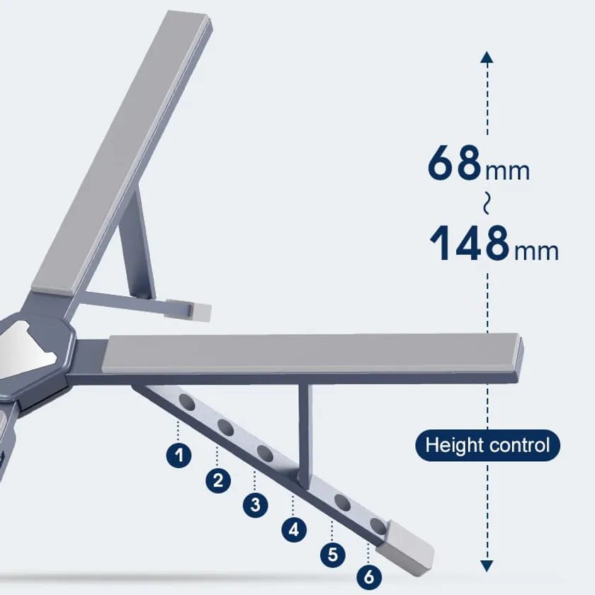 本製品は、6段階の高さ調節が可能です。一人ひとりの好みの高さに調整し、スタンドとしてノートPCの使いやすさをサポートします。