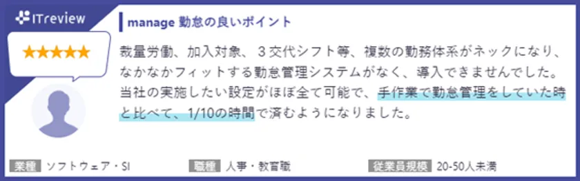 「manage 勤怠」のレビューページ: