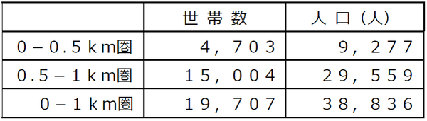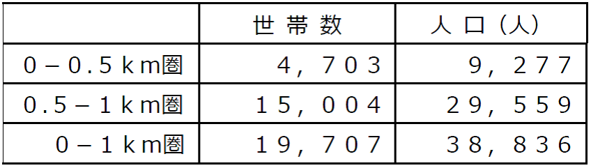 ・店舗から1㎞圏内は、単身世帯が50.9%、2人世帯が23.9%と、少人数世帯が7割以上を占めます。