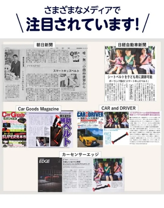 昨今のニュースで、子供用のシートベルトの装着が見直され 持ち運び便利な携帯型子供用シートベルトが大ヒット 累計約100万個突破!