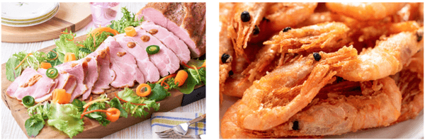 右:一般的に「甘えび」と呼ばれていますが、新潟県では鮮やかな赤色とその形が南蛮(赤唐辛子)に似ていることから「南蛮海老」と呼ばれ、11月から2月が最も美味しい、「新潟フードブランド」に認定される食材。