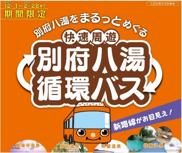 2022年2月28日(月)までの期間限定で運行される「別府八湯循環バス」は泉質も色も異なる様々な天然温泉が楽しめる温泉地を周遊する、これまでありそうでなかったバス。