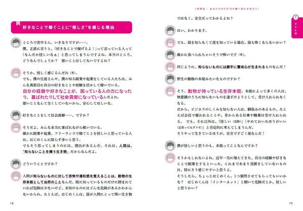 「副業素人のはじめくん」と「褒め上手な宮中先生」の会話形式で進むので、普段あまり本を読まない方も、副業の知識がゼロという方も、サクサク読み進められること間違いなし。