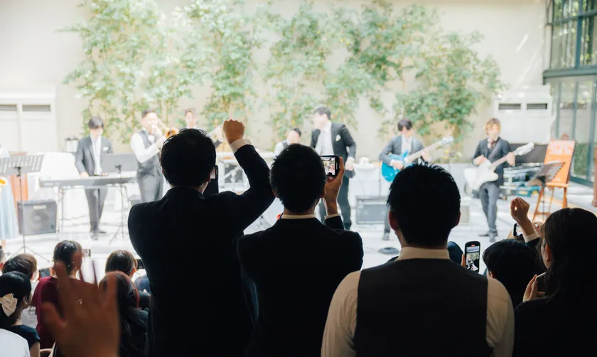 DJが雰囲気を作り、最後は新郎と友人によるライブ演奏で最高潮に