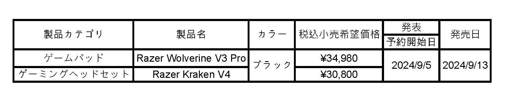 * なお、両製品の有線モデル「Razer Wolverine V3 Tournament Edition」と「Razer Kraken V4 X」に関しては、後日改めて販売開始日をご案内予定です。