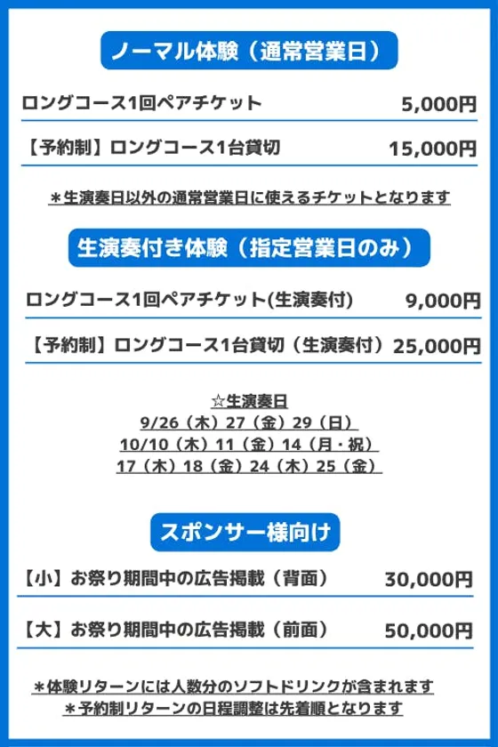 25,000円:60分コース1台貸切(生演奏付き)指定営業日のみ