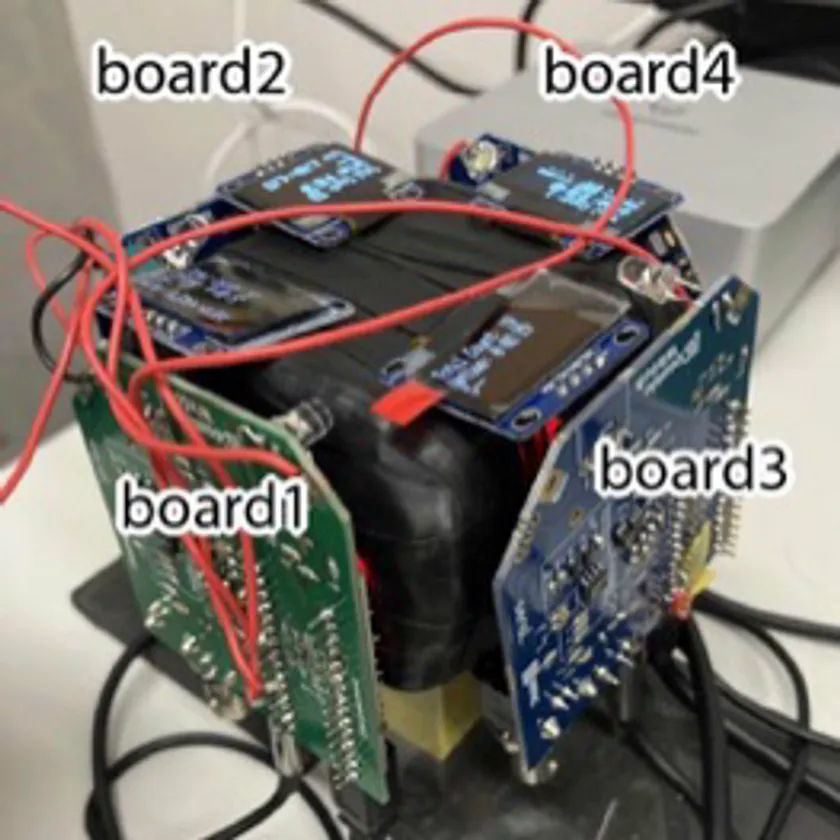 今回、Sakura Particlesが提案したのは、自分たちで開発した手作りの宇宙線2次元イメージング検出器の性能評価です(図2)。本検出器の開発は宇宙から降り注ぐ高エネルギーのミュー粒子(注釈4)を使って地球上の大型構造物の内部を透視する技術「ミュオグラフィ(注釈5)」への応用を目標にしています。このようなイメージング検出器は一般的に大型で高価ですが、Sakura Particlesは独自の工夫で、安価にミュー粒子の軌跡を測定することが可能な検出器の開発に成功しました(図3)。