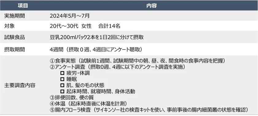 今回、たんぱく質が不足しがちな20代、30代の女性を対象に『豆乳摂取による体調改善調査』(調査主体:日本テトラパック株式会社 リセッ豆乳プロジェクト)を実施いたしました。豆乳を継続摂取することで、食生活のバランスやたんぱく質の動植物バランスが改善し、腸内細菌叢の改善、便通の改善、体の不調が軽減する可能性についてのモニター調査を行いました。