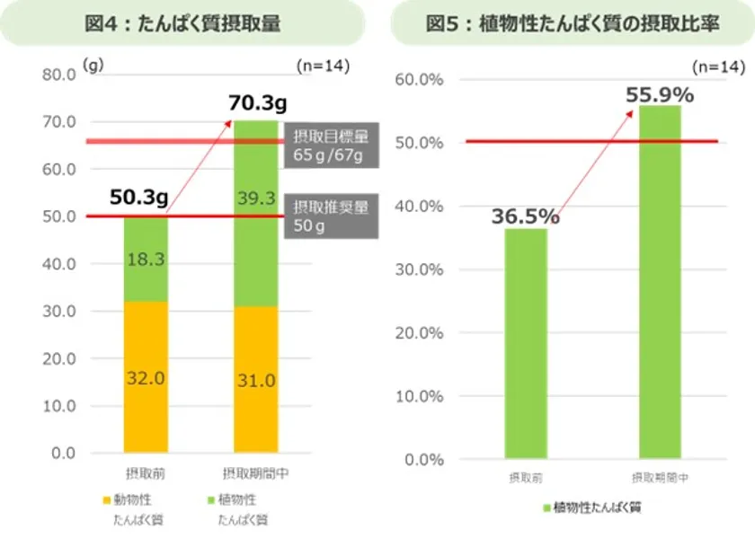 1. たんぱく質がしっかり摂れ、たんぱく質の動植物バランスも向上した