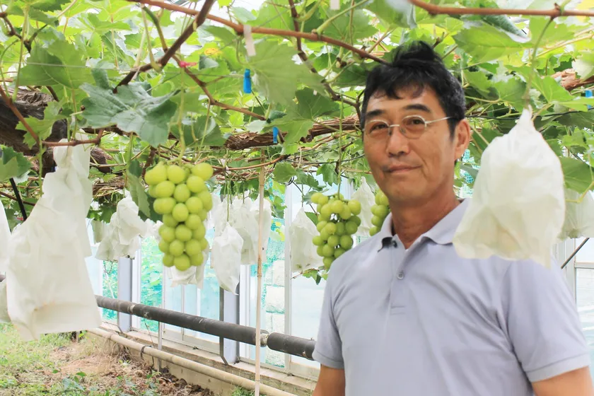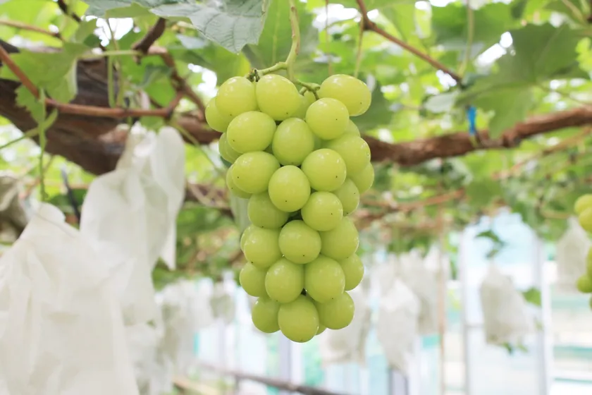 沼津市西浦の「川洋ぶどう園」さんが10年かけて土と湧水にこだわってきた土壌で、大切に育てられた、種無し・皮ごと食べられる極上シャインマスカットです。