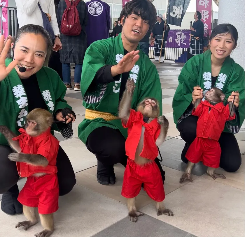 1,000年も受け継がれている「日本伝統芸能猿まわし」お猿と共に心躍るエンターテインメントをお届けいたします。