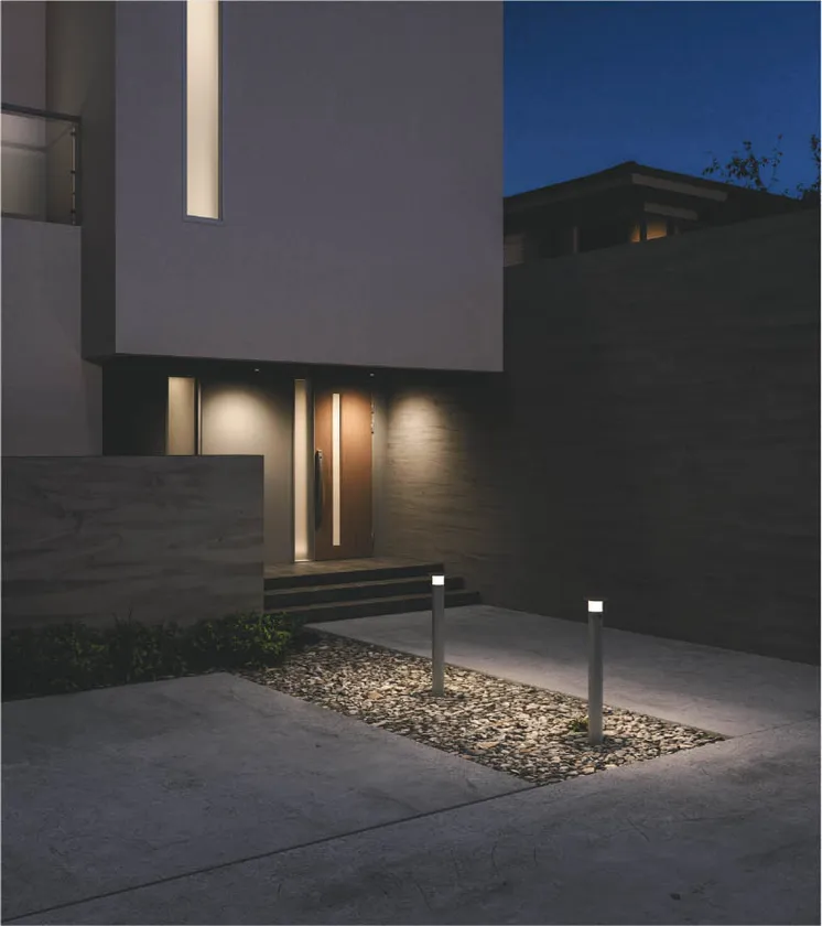 この度の新製品は、日中の太陽光を灯具のトップ部分にあるソーラーパネルで吸収し、充電池に蓄電します。周囲が一定の暗さになると充電池に蓄積された太陽エネルギーを用いて自動的に設定したモードで点灯し、周囲が一定の明るさになると自動で消灯することができます。設定モードは、人感センサモードやほんのり点灯(10%)モードなど全5種類あり、切り替えスイッチで簡単に動作設定することが可能です。設置方法は、埋込タイプとスタンドタイプの2種類をご用意し、その中でも埋込タイプは、700mmと400mmの2サイズを展開しております。また、本体色はシルバーメタリック塗装とブラック塗装の2種類で、お好みの外観や目的・用途に合わせてお選びいただけます。