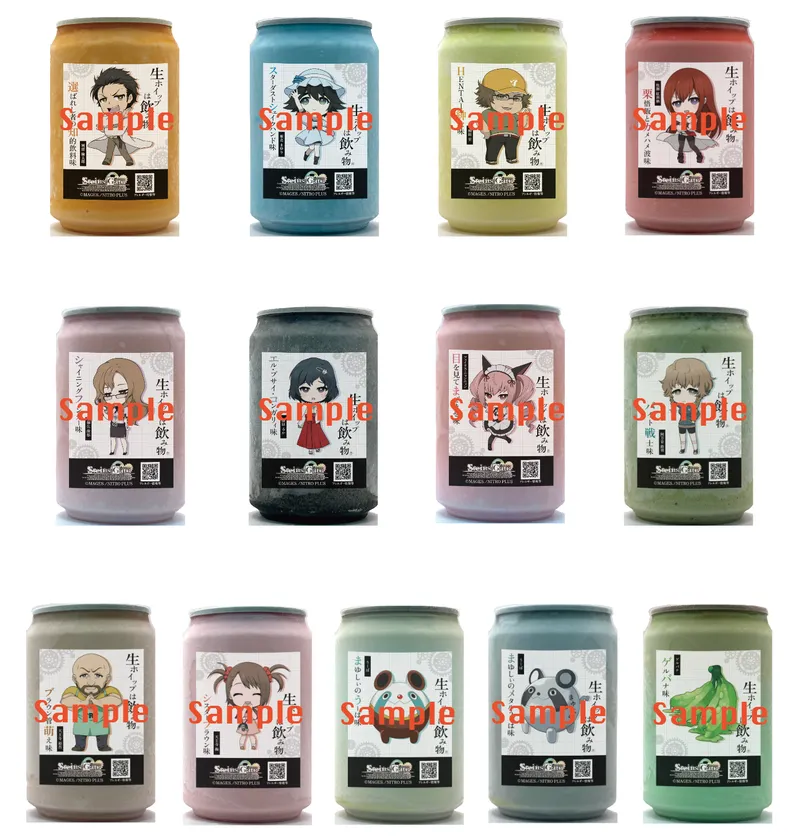 岡部倫太郎(選ばれし者の知的飲料味)、椎名まゆり(スターダストシェイクハンド味)、橋田至(HENTAI紳士味)、牧瀬紅莉栖(栗悟飯とカメハメ波味)、桐生萌郁(シャイニングフィンガー味)、漆原るか(エル・プサイ・コンガリィ味)、フェイリス・ニャンニャン(目を見てまぜまぜ味)、阿万音鈴羽(バイト戦士味)、天王寺裕吾(ブラウン管萌え味)、天王寺綯(シスターブラウン味)、うーぱ(まゆしぃのうーぱ味)、メタルうーぱ(まゆしぃのメタルうーぱ味)、ゲルバナ(ゲルバナ味)の合計13種類。