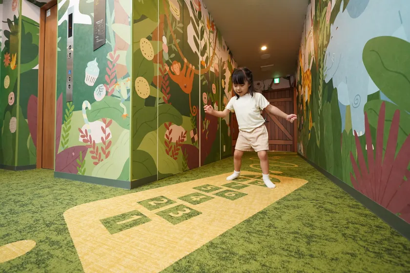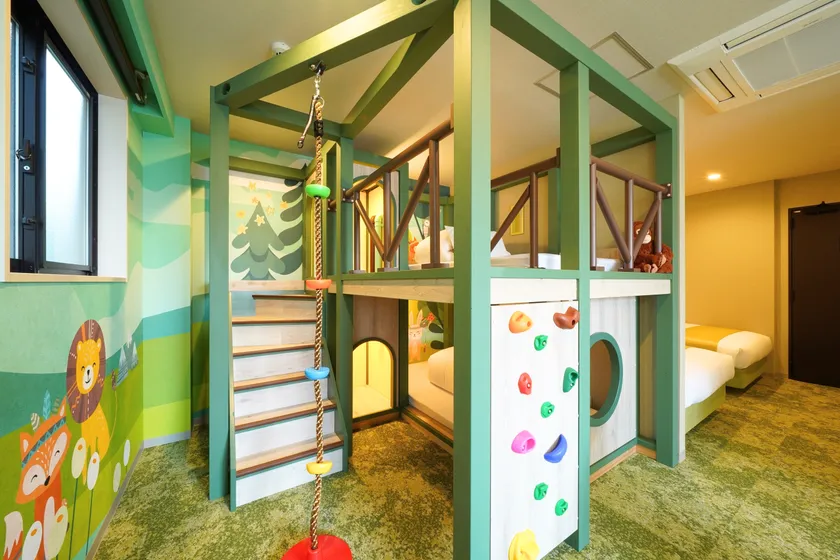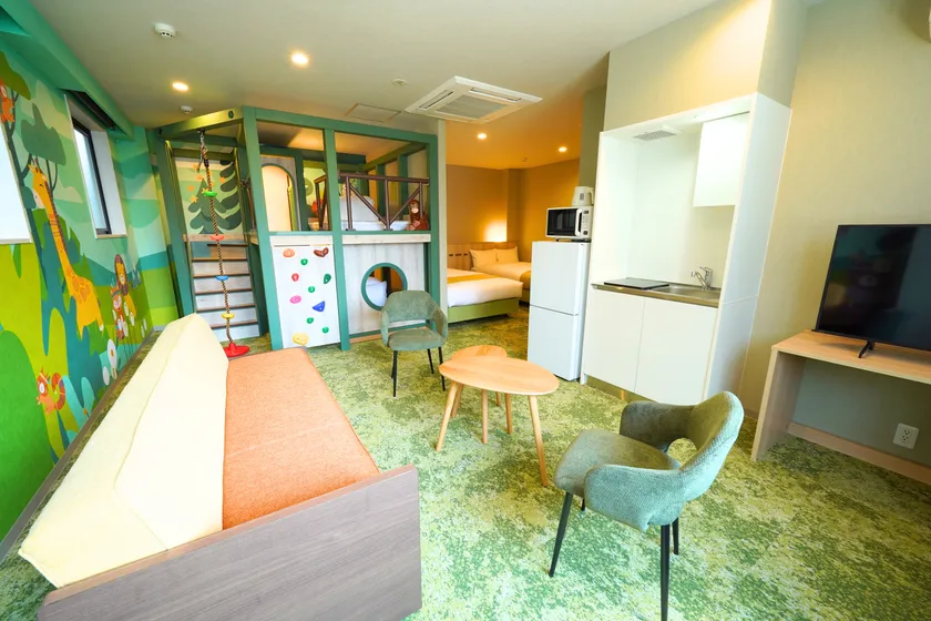 「子どもと一緒に楽しめる宿がない」「家族旅行で子どもが退屈してしまう」といったご家族のお悩みを解決するべく誕生した本施設。子どもが夢中になる空間を目指して、森・海・スイーツをテーマにした3種類の客室をご用意しました。各客室には、子どもの好奇心を刺激する仕掛けが詰まった「ひみつきち」になるアスレチック風の2段ベッドを設置。さらに、プロジェクションゲームやボルダリングウォールなど、お部屋の外でもお子様が楽しめる遊び場を館内にご用意しています。親子のコミュニケーションが生まれ家族みんなが笑顔になる、特別な時間をお過ごしいただけます。案内表示や受付スタッフは日英バイリンガル対応ですので、インバウンドのご旅行者様でも安心してご利用いただけます。また、オープンを記念して、Instagram上で無料宿泊ご招待キャンペーンを実施いたします。