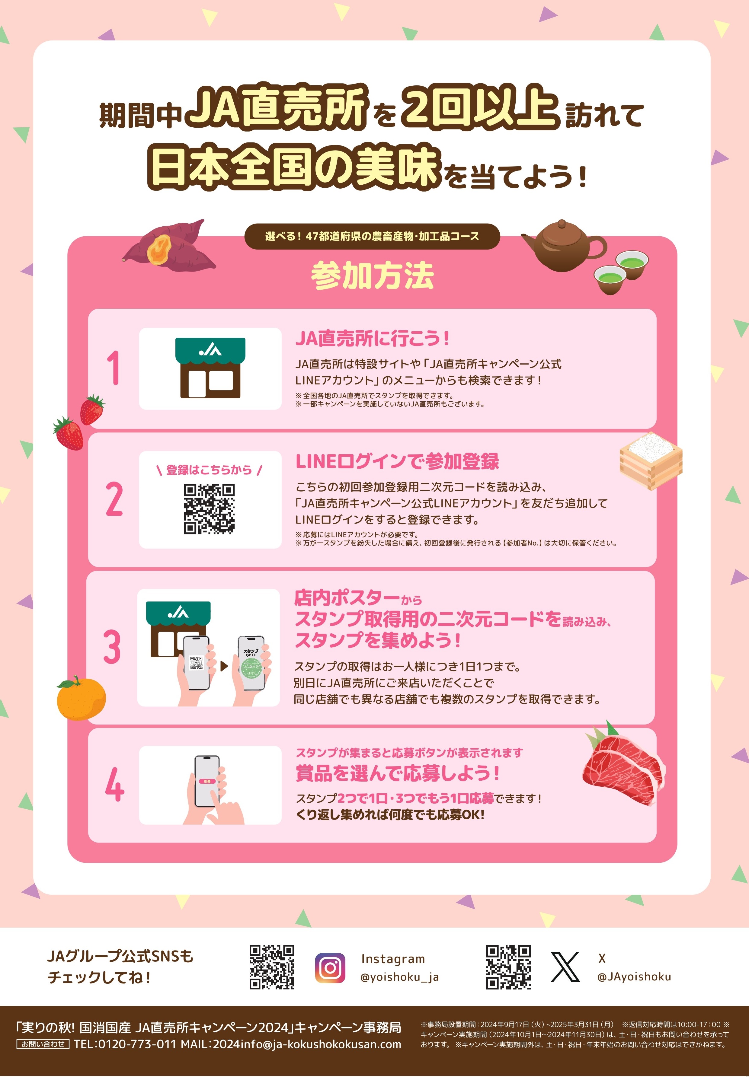実りの秋!国消(こくしょう)国産(こくさん) JA直売所キャンペーン2024 がまもなくスタート!期間中、JA直売所を訪問し スタンプを集めて、日本全国の美味を当てよう!