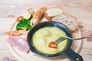 チーズを食材にかけて食べるスイスの郷土料理です。ドイツではクリスマスマーケットやホームパーティなど特別な時に食べられる人気のグルメです。