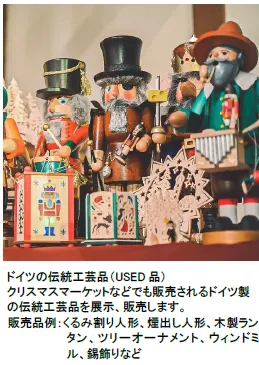くるみ割り人形や煙出し人形など、クリスマスマーケットでお馴染みのドイツの伝統工芸品などを期間限定で販売します。またクリスマスプレゼントにもオススメのクリスマス楽曲の神戸オルゴール*2を販売します。