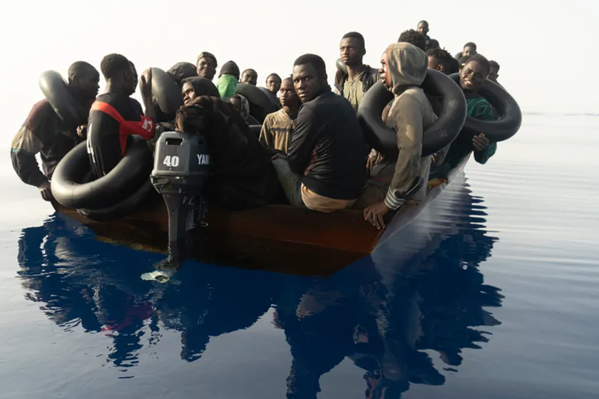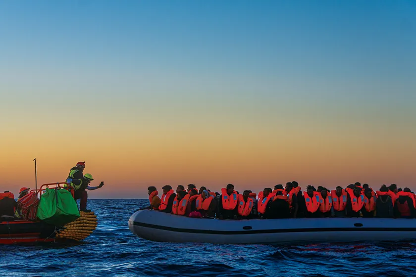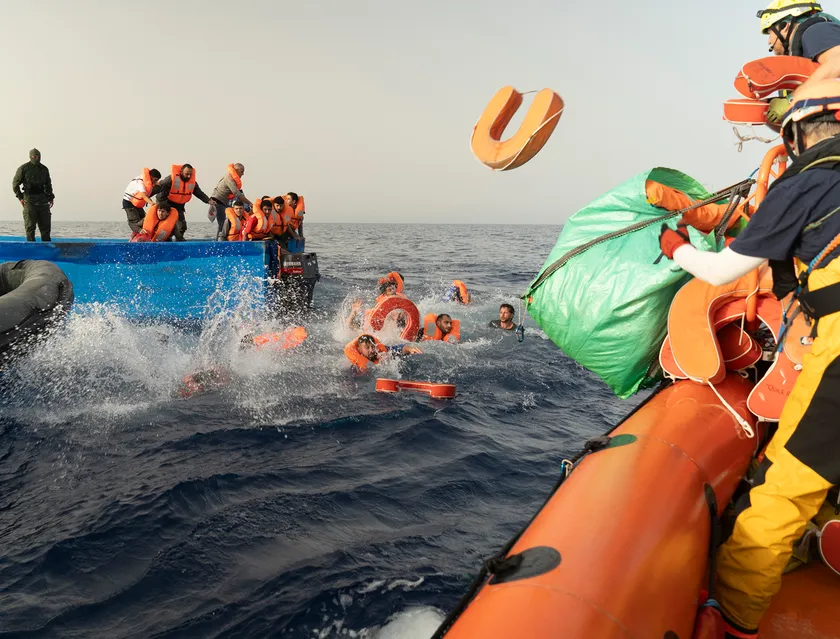 2024年1月、明け方の地中海。リビア沖から欧州を目指す「死のルート」上で、今にも沈みそうな、ぎゅうぎゅう詰めのゴムボートに乗っている遭難者を発見。その数70〜80名。ライフジャケットを配り、安全に救出すると伝え落ち着かせる。高速船に移動させ、母船までシャトルして全員が救出されるまで2、3時間の出来事だ。