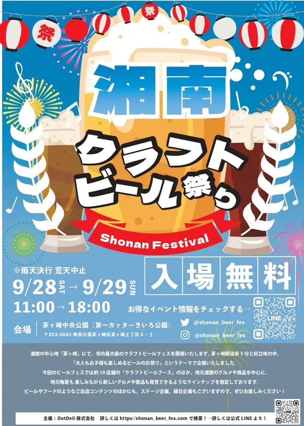 DotDeli株式会社(本社:横浜市神奈川栄区2-1)は、2024年9月28日(土)~29日(日)に第一カッターきいろ公園(中央公園)(神奈川県茅ヶ崎市茅ヶ崎2-3-1)にて、「大人もお子様も楽しめるビールのお祭り」をテーマとした『湘南クラフトビール祭り』を初開催します。