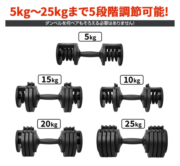 これ一つで5〜25kgまで5段階調整することができます。