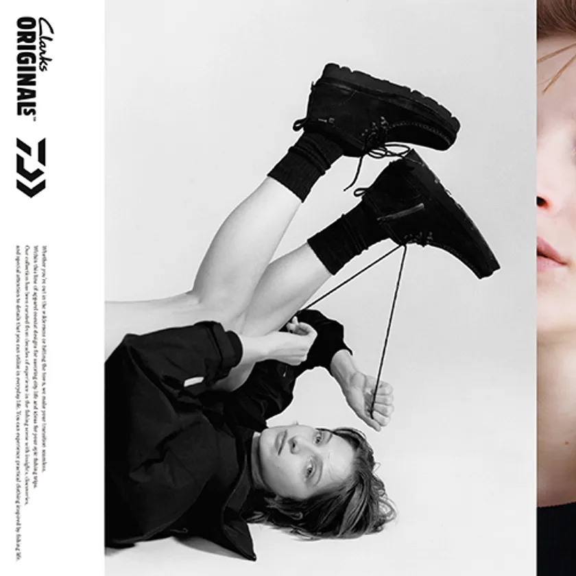 ●ゲーターの右・左の表記は非常にユニークな表現として、「CLARKS ORIGINALS」のロゴ体を活かして、左足では「L」の文字をオレンジに、右足は「R」の文字をオレンジに配色した斬新なサイン