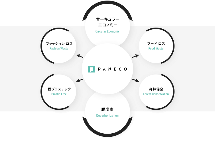 「PANECO®」は、デザインによる繊維の美しいアップサイクルで、生活の基礎である『衣・食・住』の美しくて新しい資源循環をデザインし、サーキュラーエコノミーの実現に貢献します。