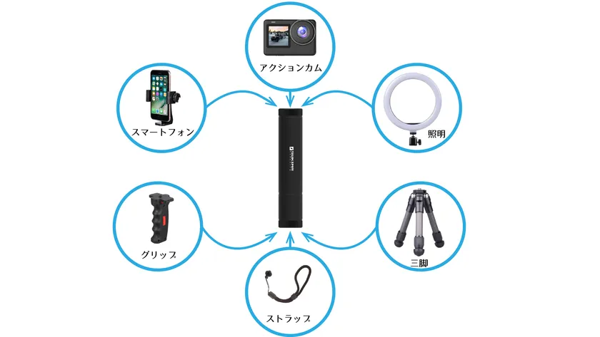 2) アクションカムやスマートフォンの補助バッテリー化が可能に