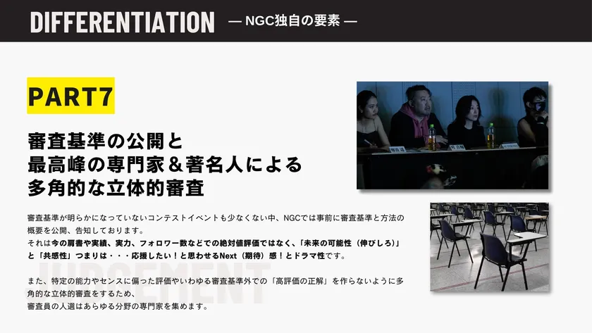 7) 審査基準の公開と最高峰の専門家&著名人による多角的な立体的審査