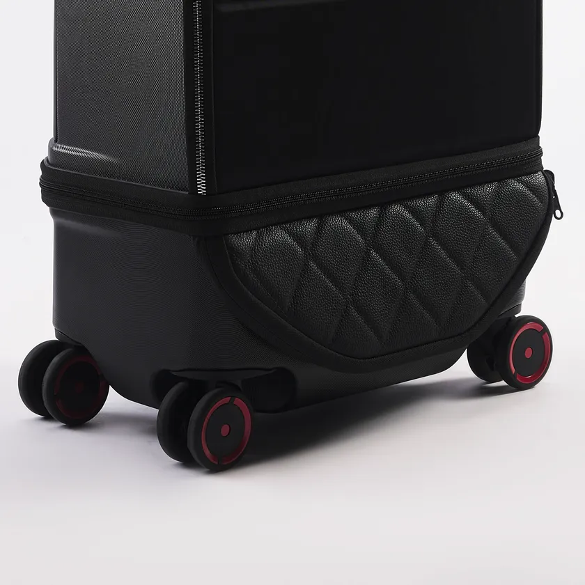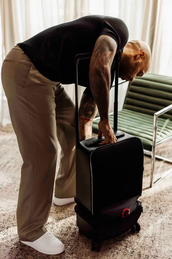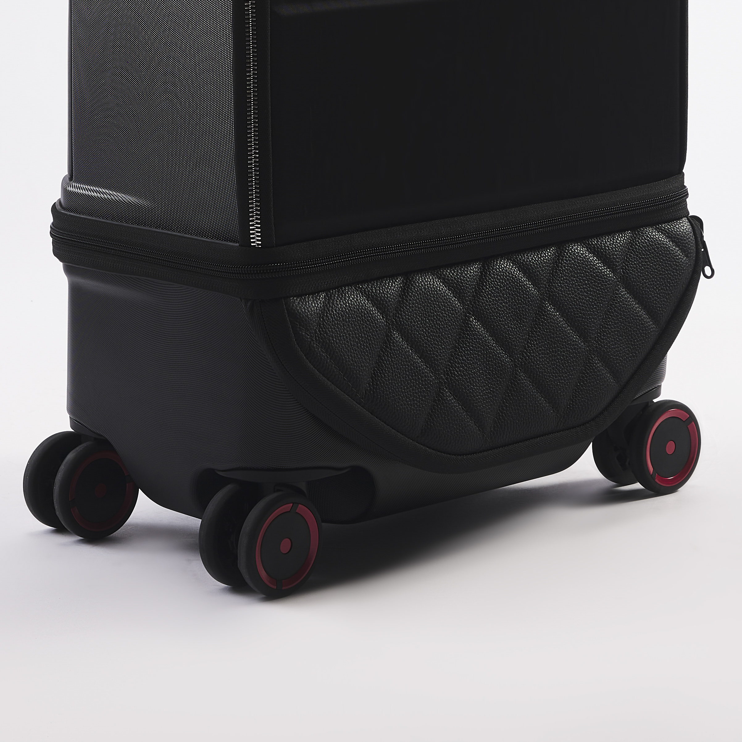 金属ベアリングと本物のタイヤを使用し、移動中の音を最小限に抑えます。また、通常のハードケースだと10キロほどの重さのところ、トランクは4.7キロ、キャリーケースは3.4キロと軽量で持ち運びが簡単です。