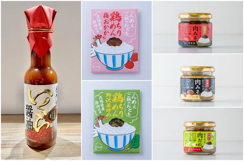 (左から)いくら醤油/鶏ちりめん2種/おてもと肉みそ3種