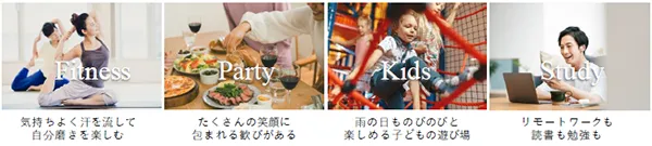 総戸数541戸の大規模な住宅棟内には、パーティールームやスタディルームに加え、フィットネスやサウナのための空間など、大人も子どもも楽しめる多彩な共用空間を創出。幅広い年齢層の方々に心を弾ませられる時間を提供いたします。