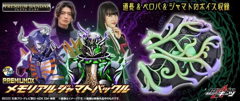 「仮面ライダーギーツ」劇中で、敵怪人であるジャマトが使用し、のちに吾妻道長(演:杢代和人)も使用した『ジャマトバックル』を、DX版から音声をアップデートしたメモリアル版として、商品化いたします。