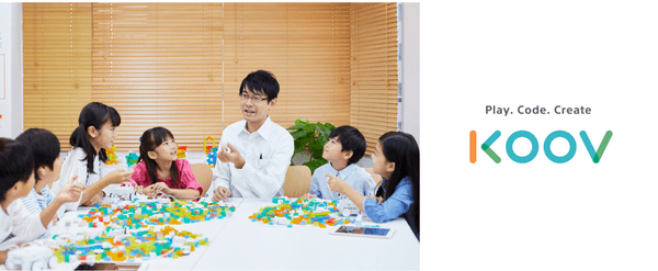KOOV®とは、ブロックで自由な「かたち」をつくり、「プログラミング」によってさまざまな「動き」を与えて遊ぶ、ロボット・プログラミング学習キット。KOOV®を使ってプログラミング学び、子どもたちの探究心や創造力、未来を切り拓く思考力を育みます。