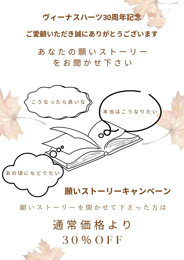 第一弾として11月より、通常価格から30%OFFのコースをご提供する『願いストーリー』キャンペーンを実施いたします。