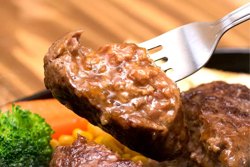 ハンバーグに余分なつなぎは一切加えていないので肉本来の旨味が存分に味わえます。