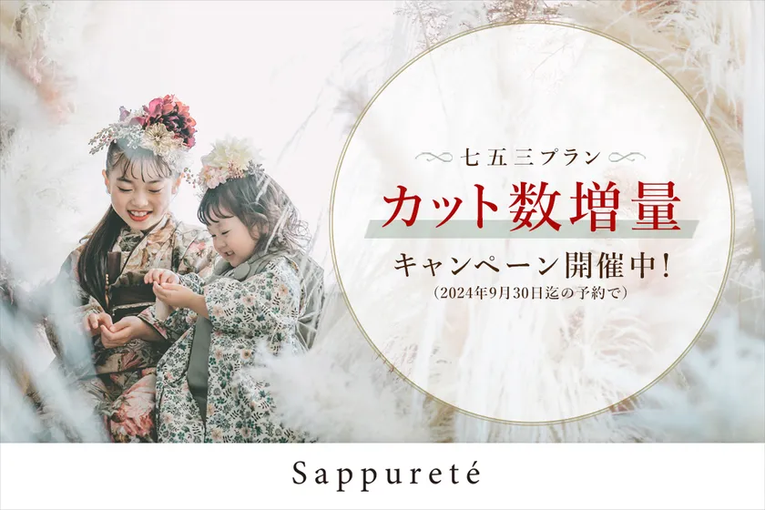 ジュノー株式会社(所在地:神奈川県横浜市)が運営する大阪市福島区にある写真スタジオ『Sappurete Studio(サピュルテスタジオ)』は、ドキュメンタリーやウエディングの現場で培っている撮影技術やトレンドを七五三撮影に活かし、お子さまのナチュラルな雰囲気や表情を写してその子らしさを引き出すことを得意としています。当スタジオでは、2024年11月30日までに撮影する七五三撮影を、2024年9月30日までに予約すると、ご納品カット数が増量するお得なキャンペーンを開催!七五三撮影は特に週末が埋まりやすいため早めのご予約をお勧めします。