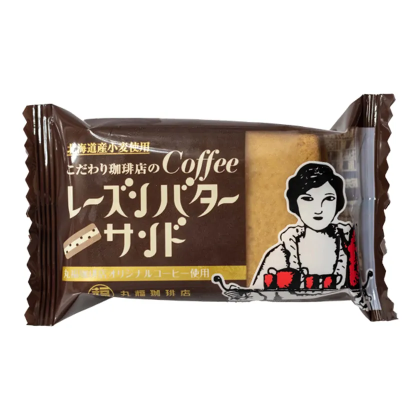 丸福のオリジナルコーヒーをクッキーの生地とレーズンバターに練り込んだ大人のレーズンサンド。