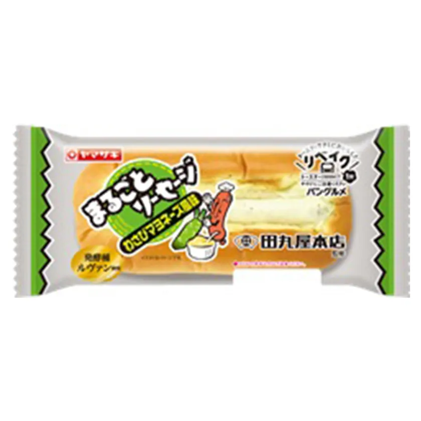 ソフトなパンにソーセージをまるごと1本のせ、マヨネーズ入りのわさび入りドレッシングで味付したジューシーでボリューム感のある製品です。リベイクしても、そのままでも!