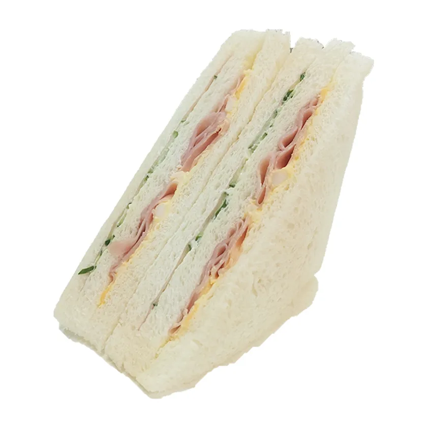 食堂車の「グルメサンドウィッチ」をイメージし、キュウリ&ハムの層、たまごサラダ&ハムの層を組み合わせました。