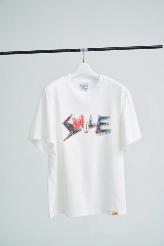 このTシャツを着てくださる皆さんと、笑顔の瞬間を一緒にと思いながら描きました。