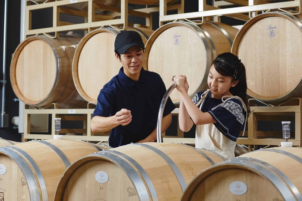 1泊2日の滞在を通して、ワインをテーマに醸造について深く学ぶことができます。1日目はリゾナーレ八ヶ岳のソムリエとともに醸造について予習をします。2日目は実際にワイナリーへ行き、葡萄畑やワインの熟成室を間近で見学しながら、葡萄がワインになるまでの醸造の過程を体験。最後は「ワイワイワークシート」へ体験を通して学んだことをまとめます。