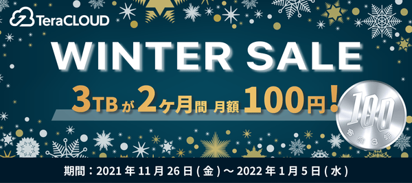 「国産クラウドストレージTeraCLOUD」が3TBを2ヶ月間、月額100円で利用可能なウィンターセールを開催中!❄️