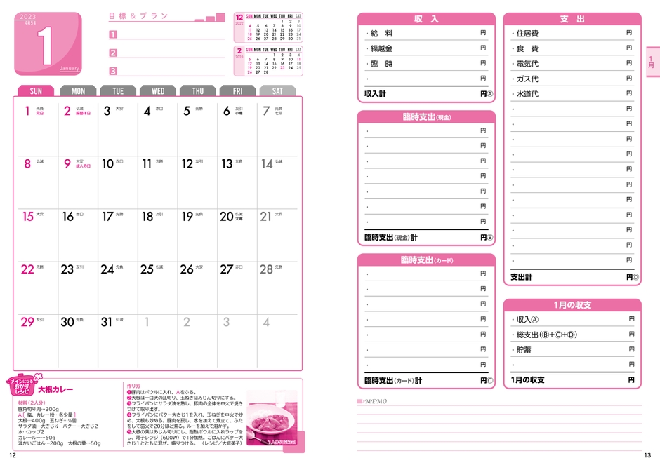 料理レシピ満載! 日記感覚で楽しくつけられる、家計簿のロングセラー! 「2023日記兼用お料理家計簿」