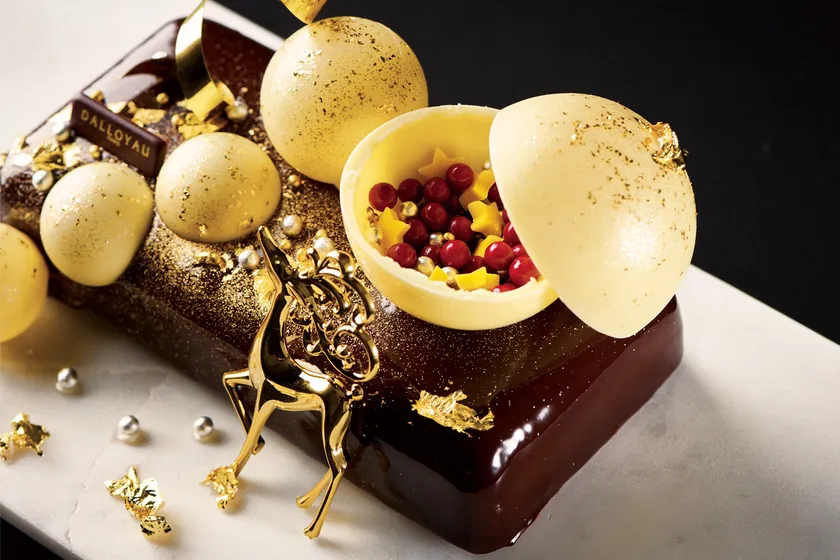 冬の夜空に浮かぶ星々を思わせるような洗練されたデザインと、ショコラブランの丸いオブジェが目を惹く、職人技が詰まったクリスマスケーキです。宝石のように並んだショコラブランのオブジェを割ると、中からアラザンやショコラがあふれ出し、クリスマスパーティーを盛り上げます。濃厚なショコラレのクリームとなめらかなショコラムースを重ねた、濃厚なチョコレートの味わいを愉しめます。数量限定40台です。