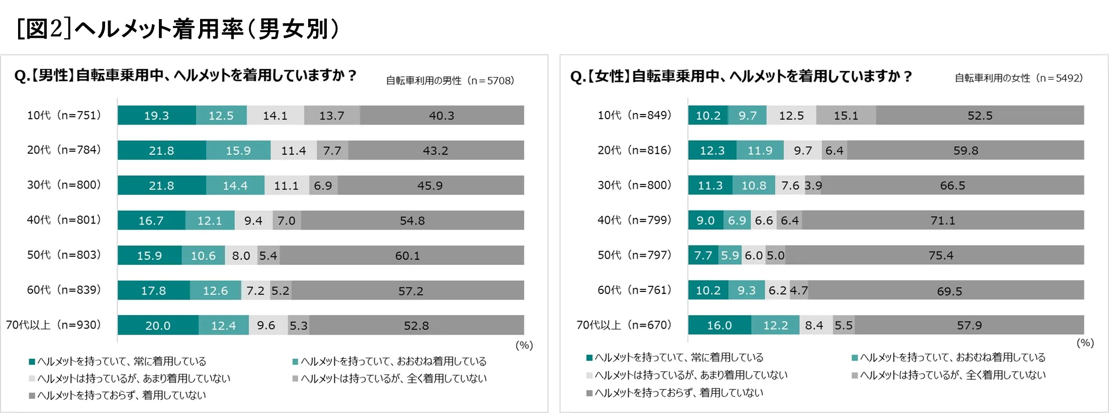 「自転車利用者のヘルメット着用に関する調査」調査結果の詳細