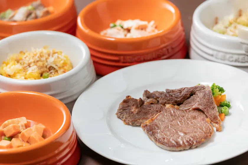 たっぷり遊んだ後は飼い主様へも食のご褒美。番組内で紹介された自然派コース料理が楽しめるプランをご用意。