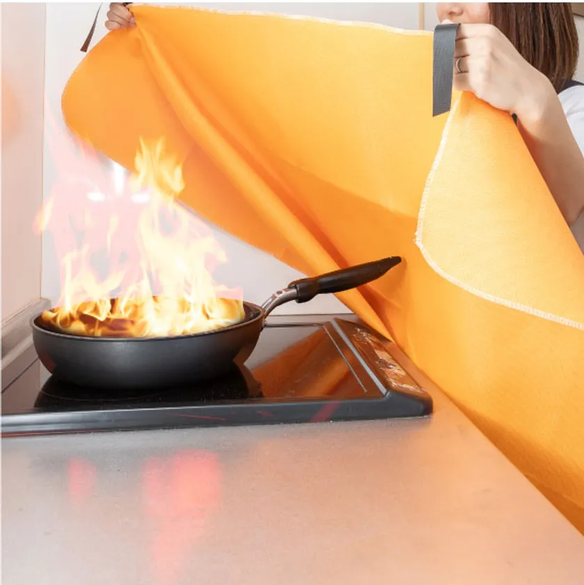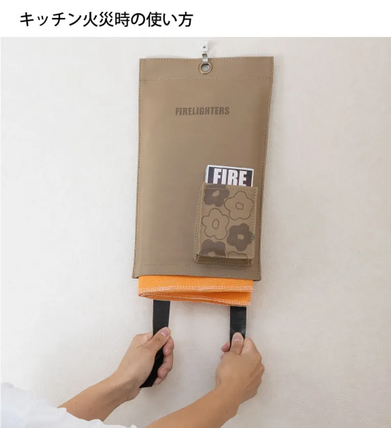 ファイヤーライターズ ファイヤーブランケットを火の上にかぶせます。その後コンロなどの熱源をすべてオフにします。これにより、火が消えるまでにかかる時間が短縮されます。※ブランケットより大きな火の場合はすぐに消防に連絡してください。